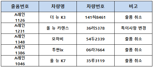K Car 옥션의 새 소식과 이용 및 변경 관련 안내 드립니다.